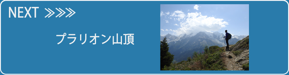 シャモニー(1,035m)からレズッシュ(Les Hoches)行きのバスに乗ってベルビュー(Bellevue)で降りると目の前がテレキャビンのベルビュー山麓駅。 山麓駅からテレキャビンで山頂駅までゆき、登山電車トラムウェイ・モンブランに乗って終点ニ・デーグル(Nidd'Aigle 2,372m)まで行ってビオナッセイ氷河を見る